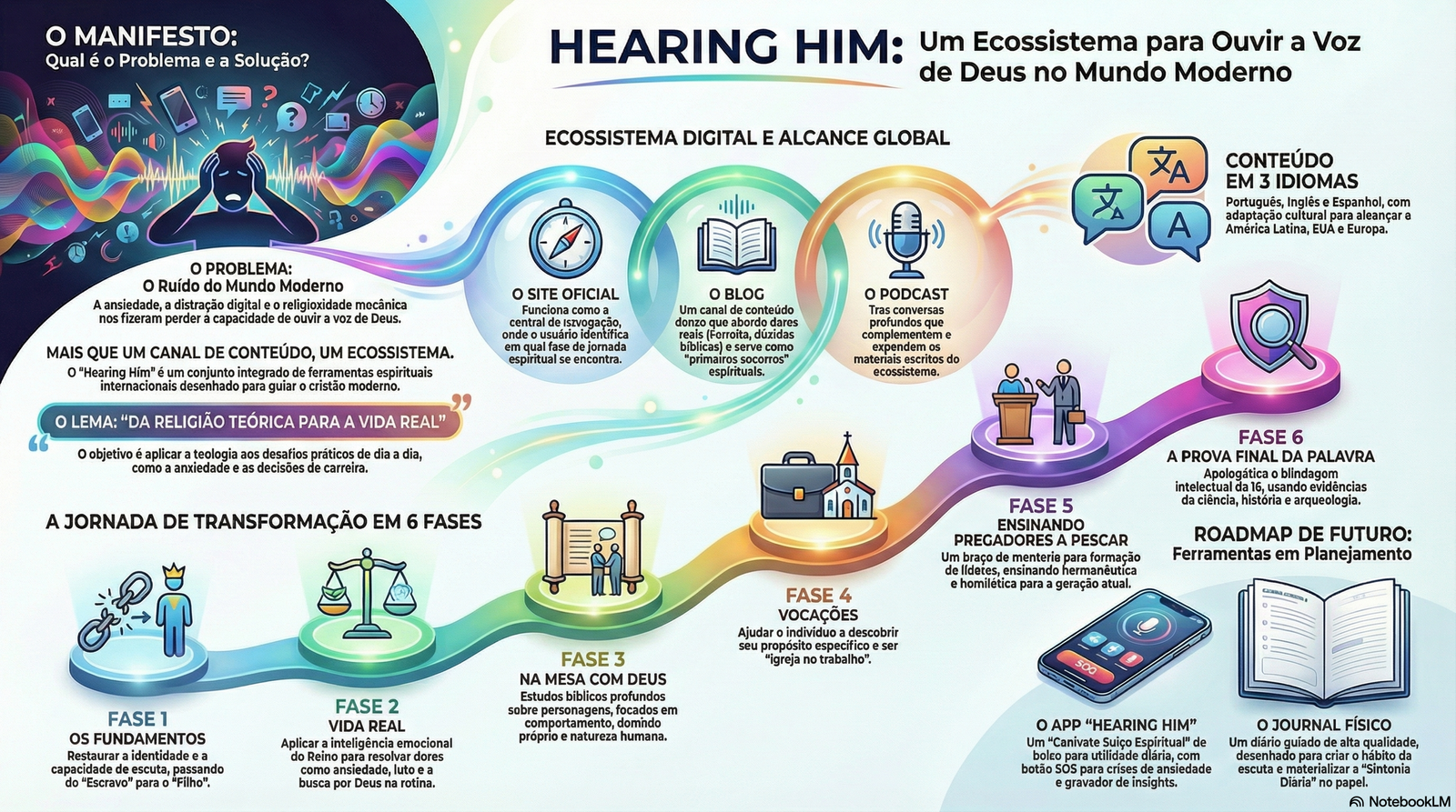 O projeto Hearing Him nasceu com um propósito claro: criar pontes. Traduzimos a profundidade da Bíblia para uma linguagem leve, visual e honesta. Queremos ajudar você a sair da culpa religiosa e entrar em um relacionamento de paz com Jesus.