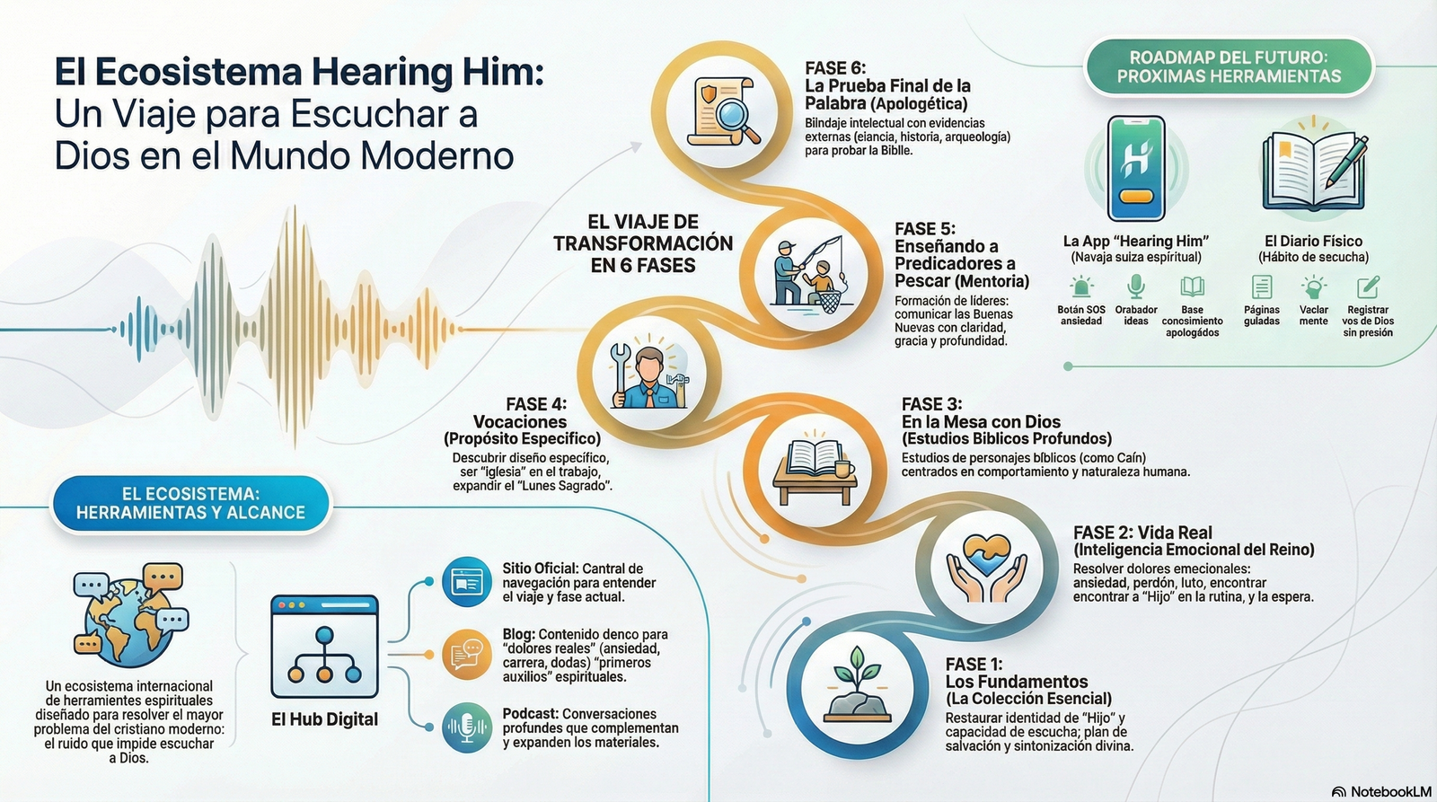 El proyecto Hearing Him nació con un propósito claro: crear puentes. Traducimos la profundidad de la Biblia a un lenguaje ligero, visual y honesto. Queremos ayudarte a salir de la culpa religiosa y entrar en una relación de paz con Jesús.